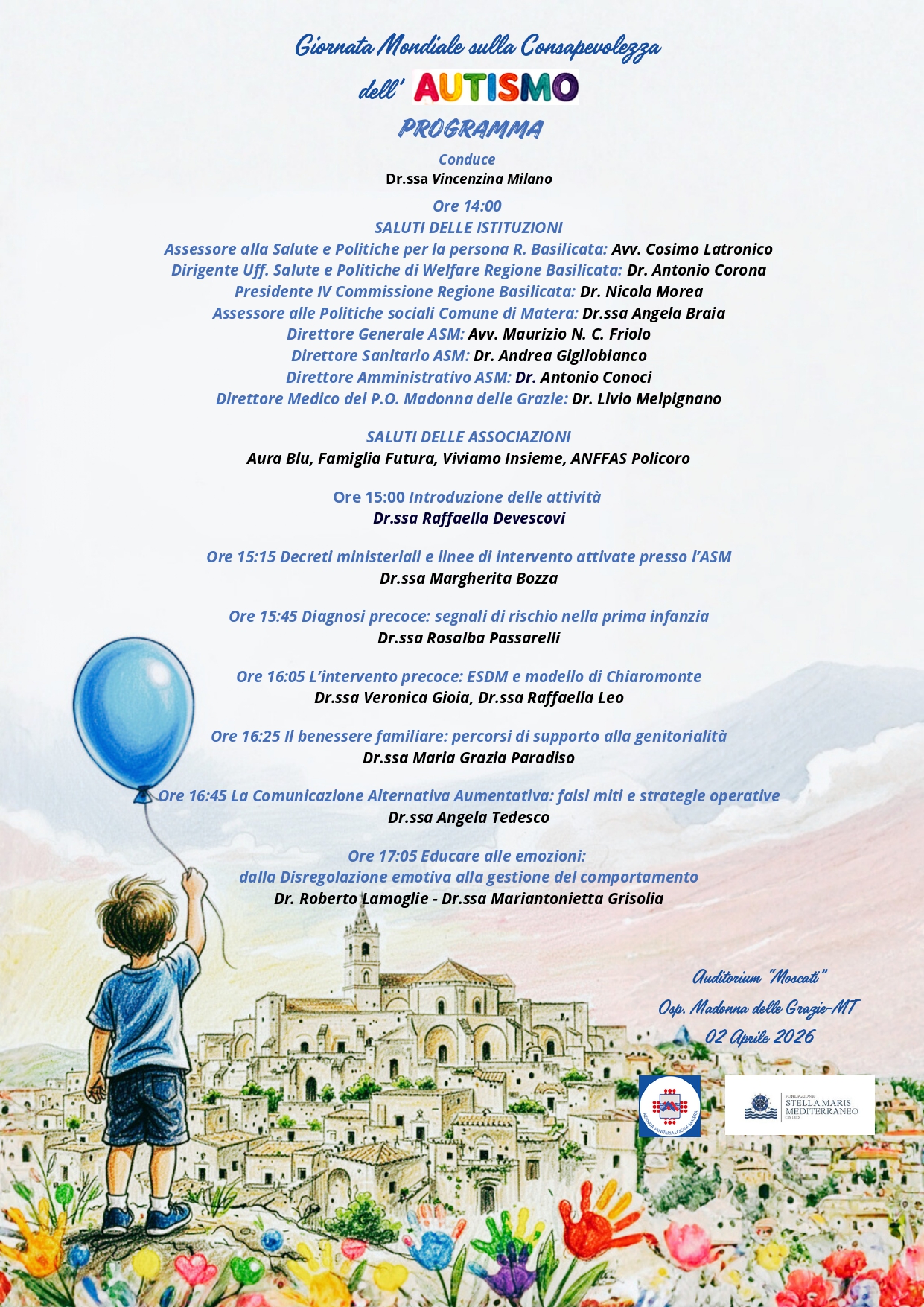 L’iniziativa, in programma a partire dalle ore 14 nell’Auditorium dell’Ospedale Madonna delle Grazie, rappresenta un’importante occasione per sensibilizzare la popolazione sul tema dell’Autismo