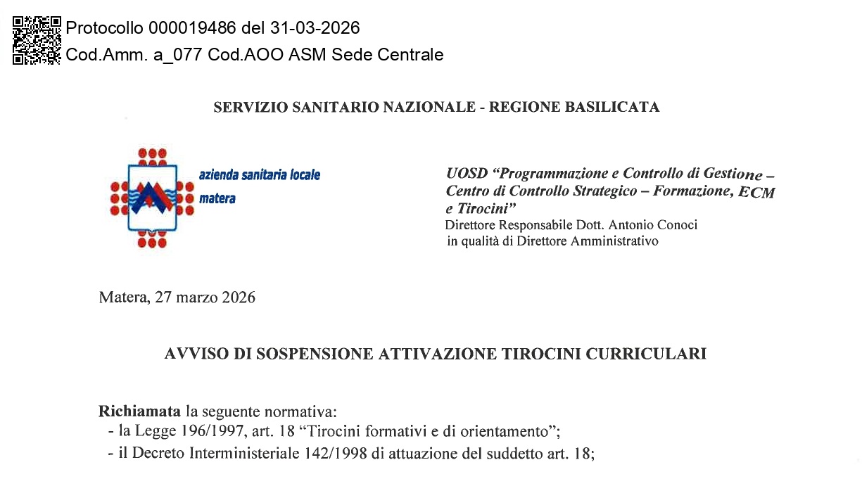 AVVISO DI SOSPENSIONE ATTIVAZIONE TIROCINI CURRICOLARI