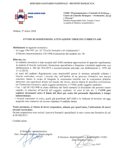 AVVISO DI SOSPENSIONE ATTIVAZIONE TIROCINI CURRICOLARI